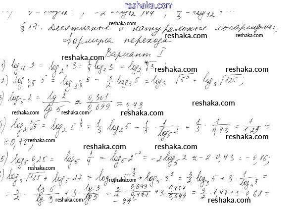 Представляем вам сборники по Алгебре, с готовыми ответами к Дидактическим материалам Шабунин школьной программы для учеников десятый класса. Это не просто гдз с ответом, а с подсказками, как верно решить §17. Десятичные и натуральные логарифмы. Формула перехода Глава 4. Логарифмическая функция вариант 1. Проверяй домашку с умом и получай высший балл!