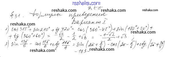 Представляем вам сборники по Алгебре, с готовыми ответами к Дидактическим материалам Шабунин школьной программы для учеников десятый класса. Это не просто гдз с ответом, а с подсказками, как верно решить §31. Формулы приведения Глава 5. Тригонометрические формулы вариант 1. Проверяй домашку с умом и получай высший балл!