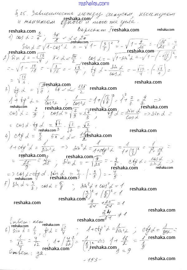 Представляем вам сборники по Алгебре, с готовыми ответами к Дидактическим материалам Шабунин школьной программы для учеников десятый класса. Это не просто гдз с ответом, а с подсказками, как верно решить §25. Зависимость между синусом, косинусом и тангенсом одного и того же угла Глава 5. Тригонометрические формулы вариант 1. Проверяй домашку с умом и получай высший балл!