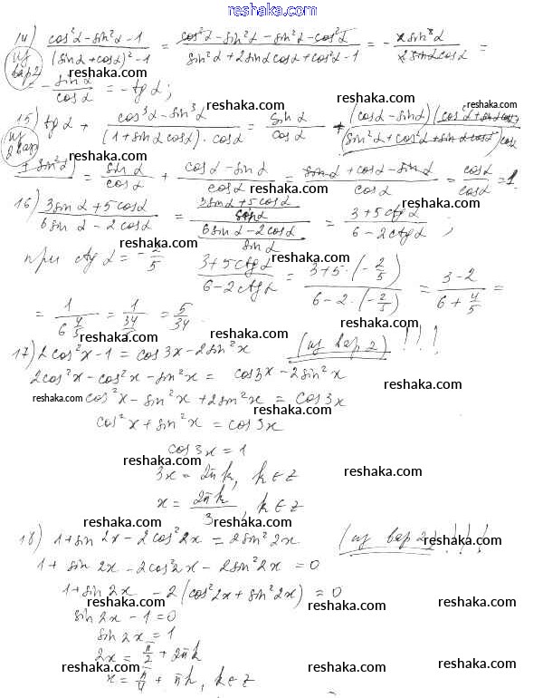 Решака - онлайн ответы Алгебра Шабунин, Ткачева за 10 класс Дидактические материалы Базовый и углубленный уровень ФГОС 2017 - вариант 1