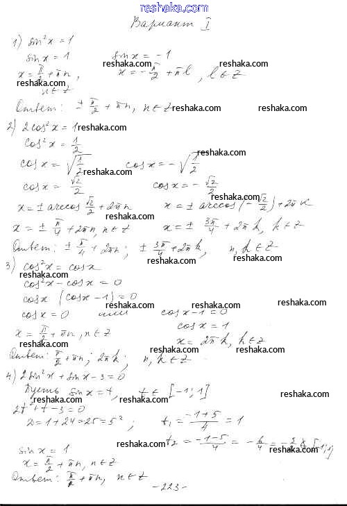 Решака - онлайн ответы Алгебра Шабунин, Ткачева за 10 класс Дидактические материалы Базовый и углубленный уровень ФГОС 2017 - вариант 1