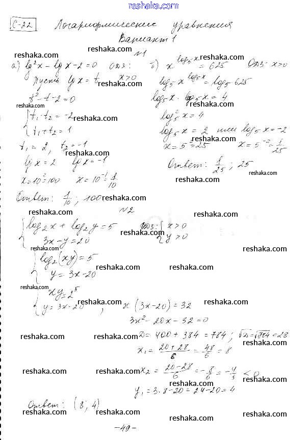 Представляем вам сборники по Алгебре, с готовыми ответами к Самостоятельным работам Александрова школьной программы для учеников одиннадцатый класса. Это не просто гдз с ответом, а с подсказками, как верно решить Самостоятельные работы 22 (Варианты) 1. Проверяй домашку с умом и получай высший балл!