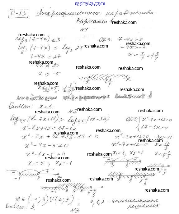 Решака - онлайн ответы Алгебра Александрова за 11 класс Самостоятельные работы Базовый уровень ФГОС 2016 - 1