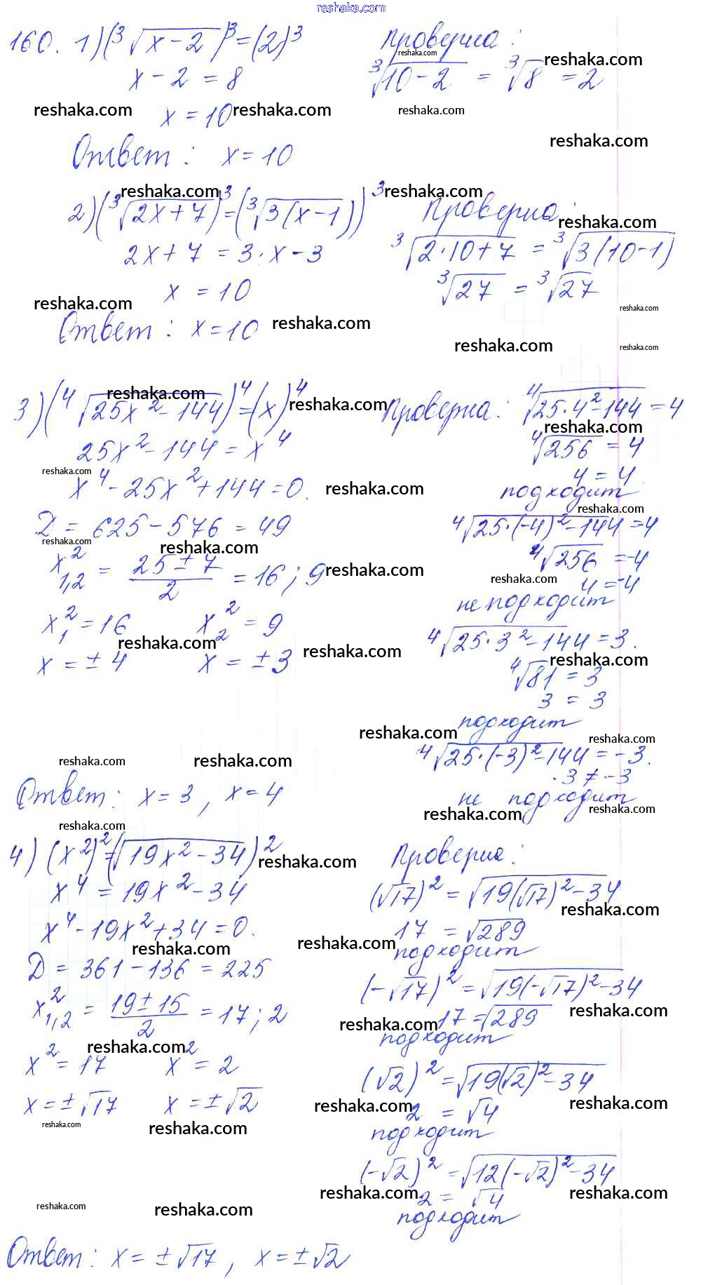 Решака - онлайн ответы Алгебра Алимов, Ткачева за 10-11 класс Учебник Базовый и углубленный уровень ФГОС 2015 - 160