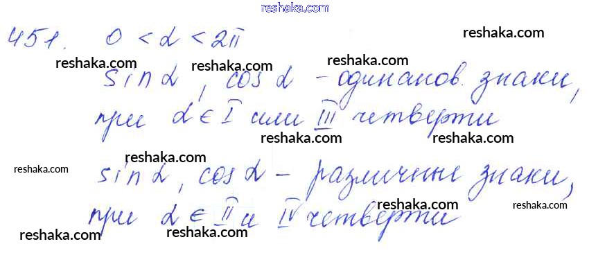 Решака - онлайн ответы Алгебра Алимов, Ткачева за 10-11 класс Учебник Базовый и углубленный уровень ФГОС 2015 - 451