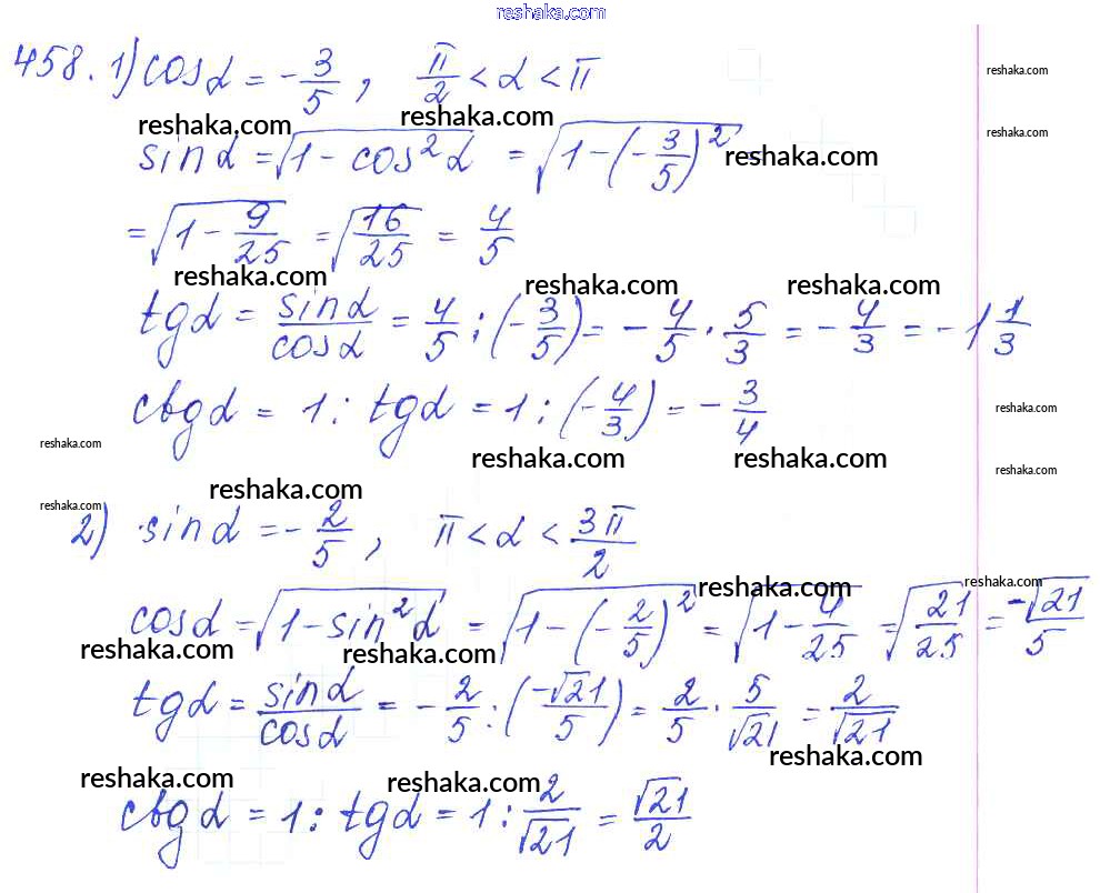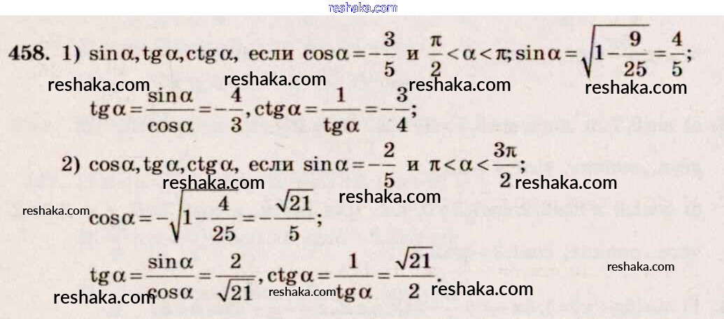 Решака - онлайн ответы Алгебра Алимов, Ткачева за 10-11 класс Учебник Базовый и углубленный уровень ФГОС 2015 - 458
