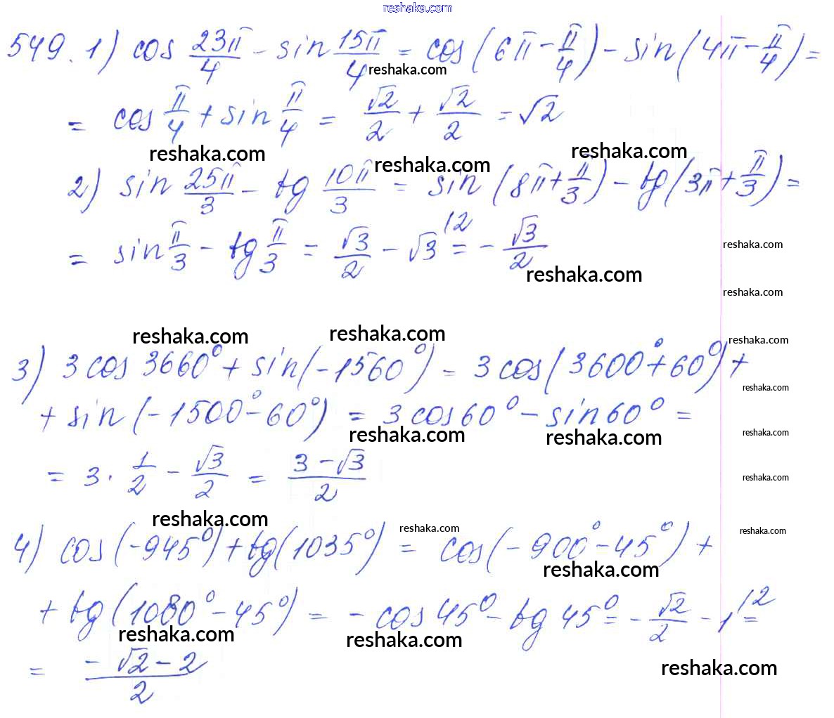 Решака - онлайн ответы Алгебра Алимов, Ткачева за 10-11 класс Учебник Базовый и углубленный уровень ФГОС 2015 - 549