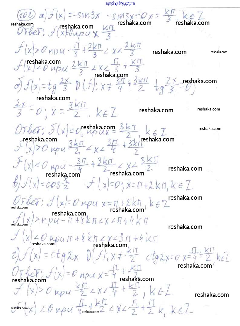 Решака - онлайн ответы Алгебра Колмогоров, Абрамов за 10-11 класс Учебник ФГОС 2008 - 102