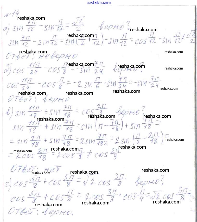 Решака - онлайн ответы Алгебра Колмогоров, Абрамов за 10-11 класс Учебник ФГОС 2008 - 14