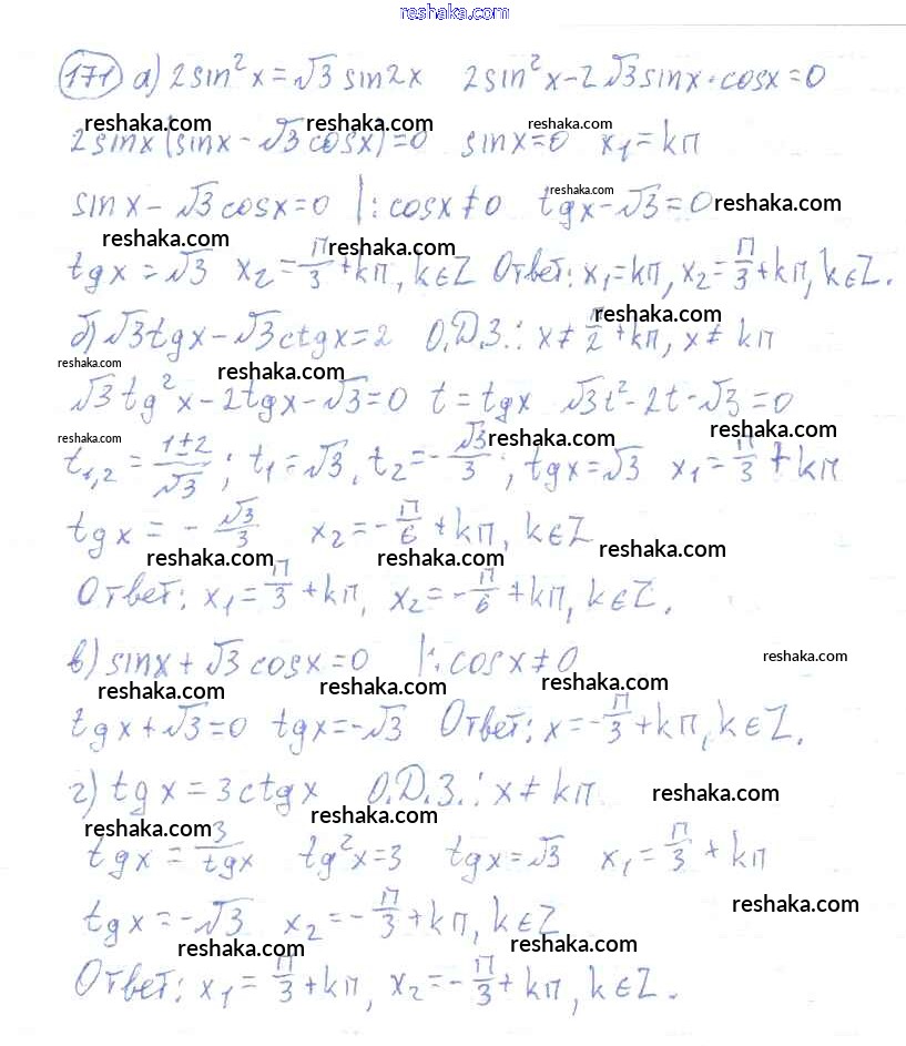 Решака - онлайн ответы Алгебра Колмогоров, Абрамов за 10-11 класс Учебник ФГОС 2008 - 171