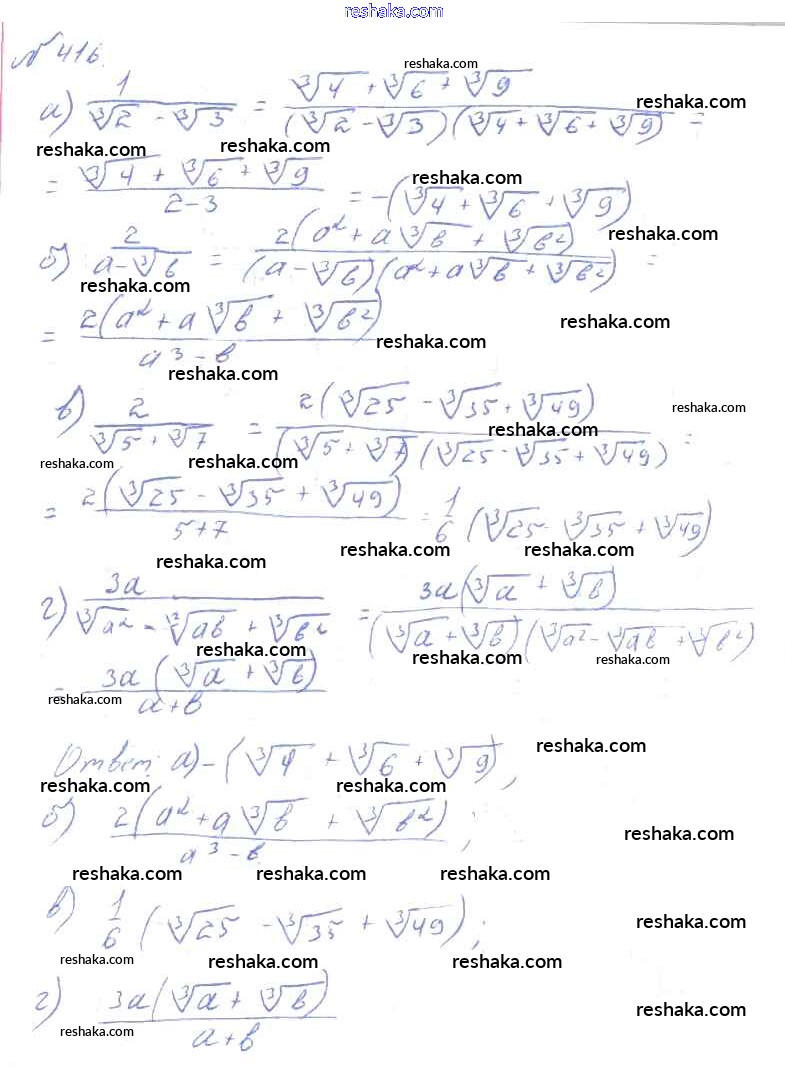 Решака - онлайн ответы Алгебра Колмогоров, Абрамов за 10-11 класс Учебник ФГОС 2008 - 416
