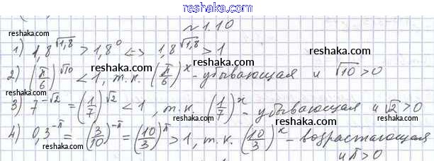 Представляем вам сборники по Алгебре, с готовыми ответами к Учебнику Мерзляк школьной программы для учеников одиннадцатый класса. Это не просто гдз с ответом, а с подсказками, как верно решить §1. Степень с произвольным действительным показателем. Показательная функция 1.10. Проверяй домашку с умом и получай высший балл!