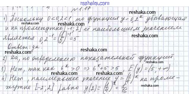 Представляем вам сборники по Алгебре, с готовыми ответами к Учебнику Мерзляк школьной программы для учеников одиннадцатый класса. Это не просто гдз с ответом, а с подсказками, как верно решить §1. Степень с произвольным действительным показателем. Показательная функция 1.17. Проверяй домашку с умом и получай высший балл!