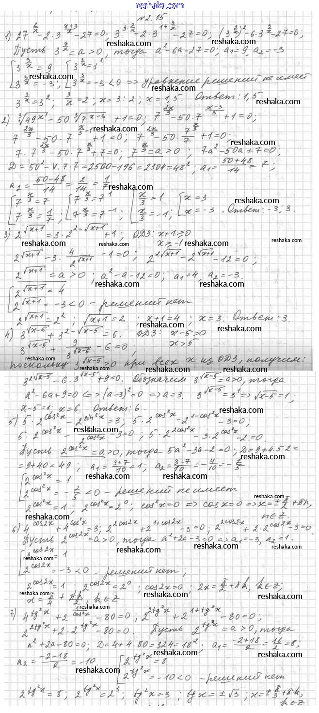 Представляем вам сборники по Алгебре, с готовыми ответами к Учебнику Мерзляк школьной программы для учеников одиннадцатый класса. Это не просто гдз с ответом, а с подсказками, как верно решить §2. Показательные уравнения 2.15. Проверяй домашку с умом и получай высший балл!