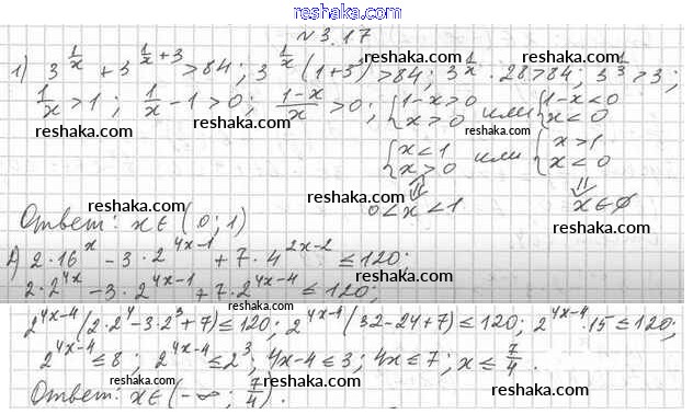 Представляем вам сборники по Алгебре, с готовыми ответами к Учебнику Мерзляк школьной программы для учеников одиннадцатый класса. Это не просто гдз с ответом, а с подсказками, как верно решить §3. Показательные неравенства 3.17. Проверяй домашку с умом и получай высший балл!