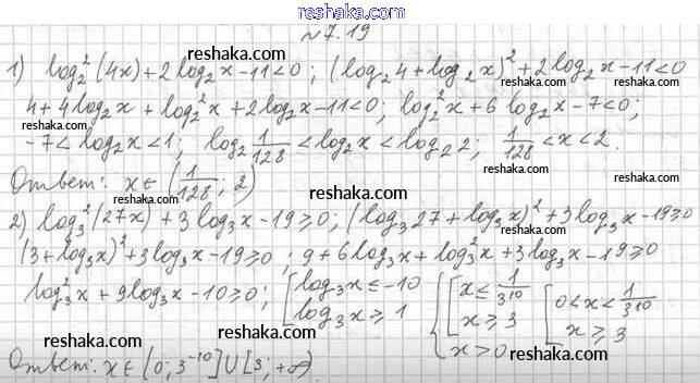 Представляем вам сборники по Алгебре, с готовыми ответами к Учебнику Мерзляк школьной программы для учеников одиннадцатый класса. Это не просто гдз с ответом, а с подсказками, как верно решить §7. Логарифмические неравенства 7.19. Проверяй домашку с умом и получай высший балл!