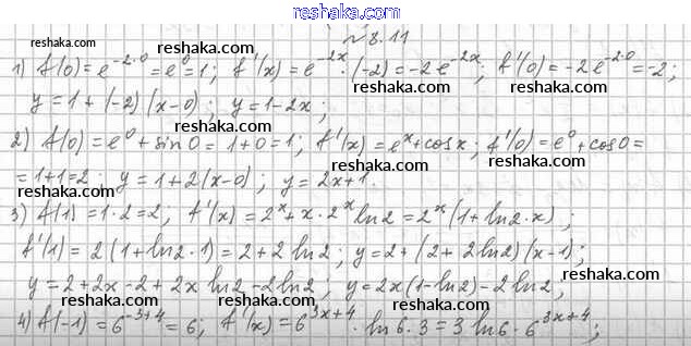 Представляем вам сборники по Алгебре, с готовыми ответами к Учебнику Мерзляк школьной программы для учеников одиннадцатый класса. Это не просто гдз с ответом, а с подсказками, как верно решить §8. Производные показательной и логарифмической функций 8.11. Проверяй домашку с умом и получай высший балл!