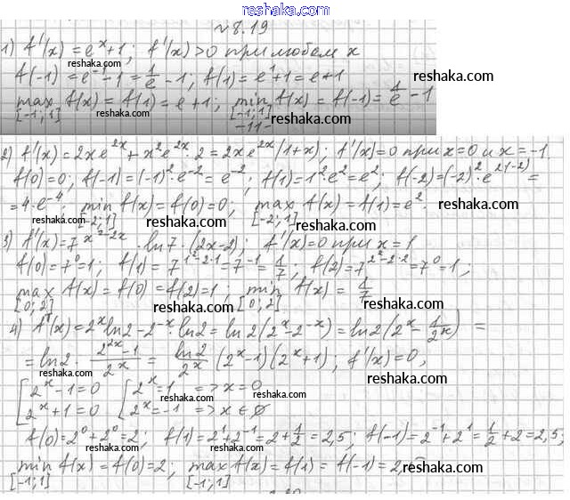 Представляем вам сборники по Алгебре, с готовыми ответами к Учебнику Мерзляк школьной программы для учеников одиннадцатый класса. Это не просто гдз с ответом, а с подсказками, как верно решить §8. Производные показательной и логарифмической функций 8.19. Проверяй домашку с умом и получай высший балл!