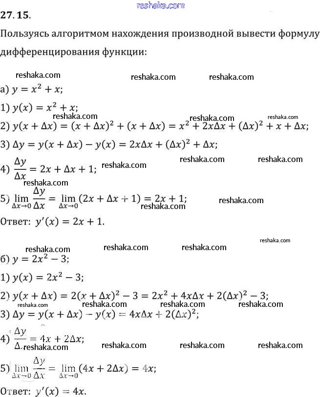 Представляем вам сборники по Алгебре, с готовыми ответами к Задачнику Мордкович школьной программы для учеников десятый-одиннадцатый класса. Это не просто гдз с ответом, а с подсказками, как верно решить §27. Определение производной Глава 5 27. 15. Проверяй домашку с умом и получай высший балл!