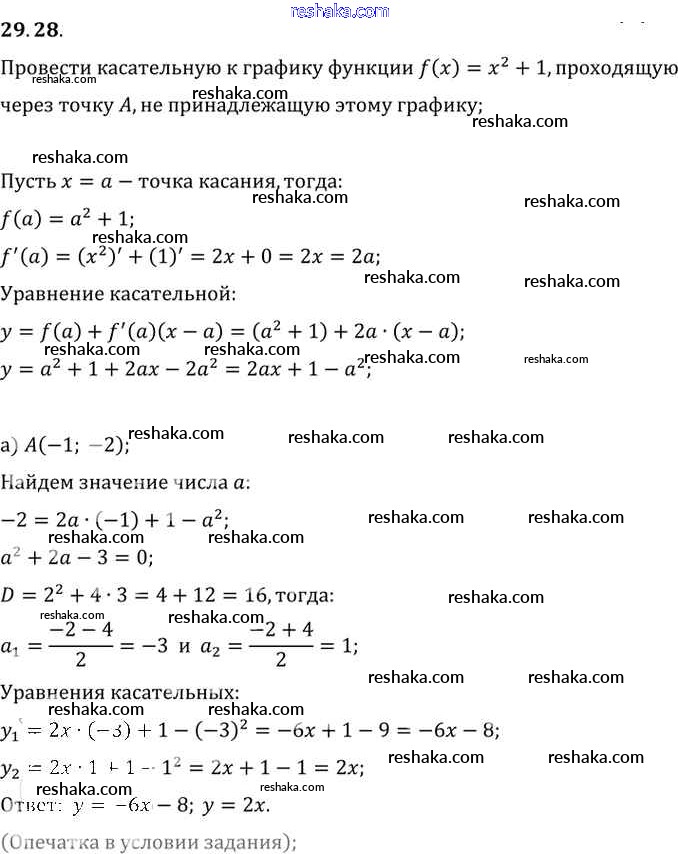 Представляем вам сборники по Алгебре, с готовыми ответами к Задачнику Мордкович школьной программы для учеников десятый-одиннадцатый класса. Это не просто гдз с ответом, а с подсказками, как верно решить §29. Уравнение касательной к графику функции Глава 5 29.28. Проверяй домашку с умом и получай высший балл!