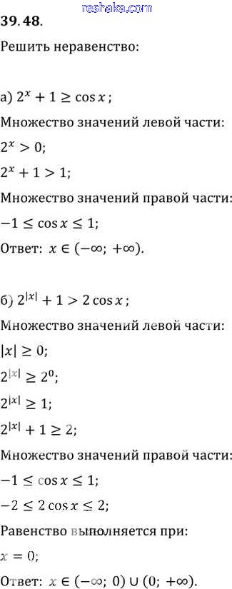 Представляем вам сборники по Алгебре, с готовыми ответами к Задачнику Мордкович школьной программы для учеников десятый-одиннадцатый класса. Это не просто гдз с ответом, а с подсказками, как верно решить §39. Показательная функция, ее свойства и график Глава 7 39.48. Проверяй домашку с умом и получай высший балл!