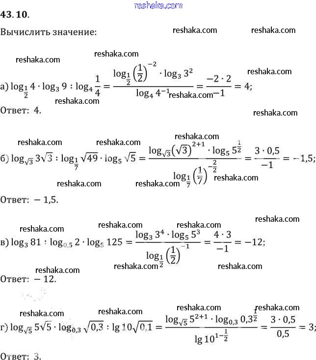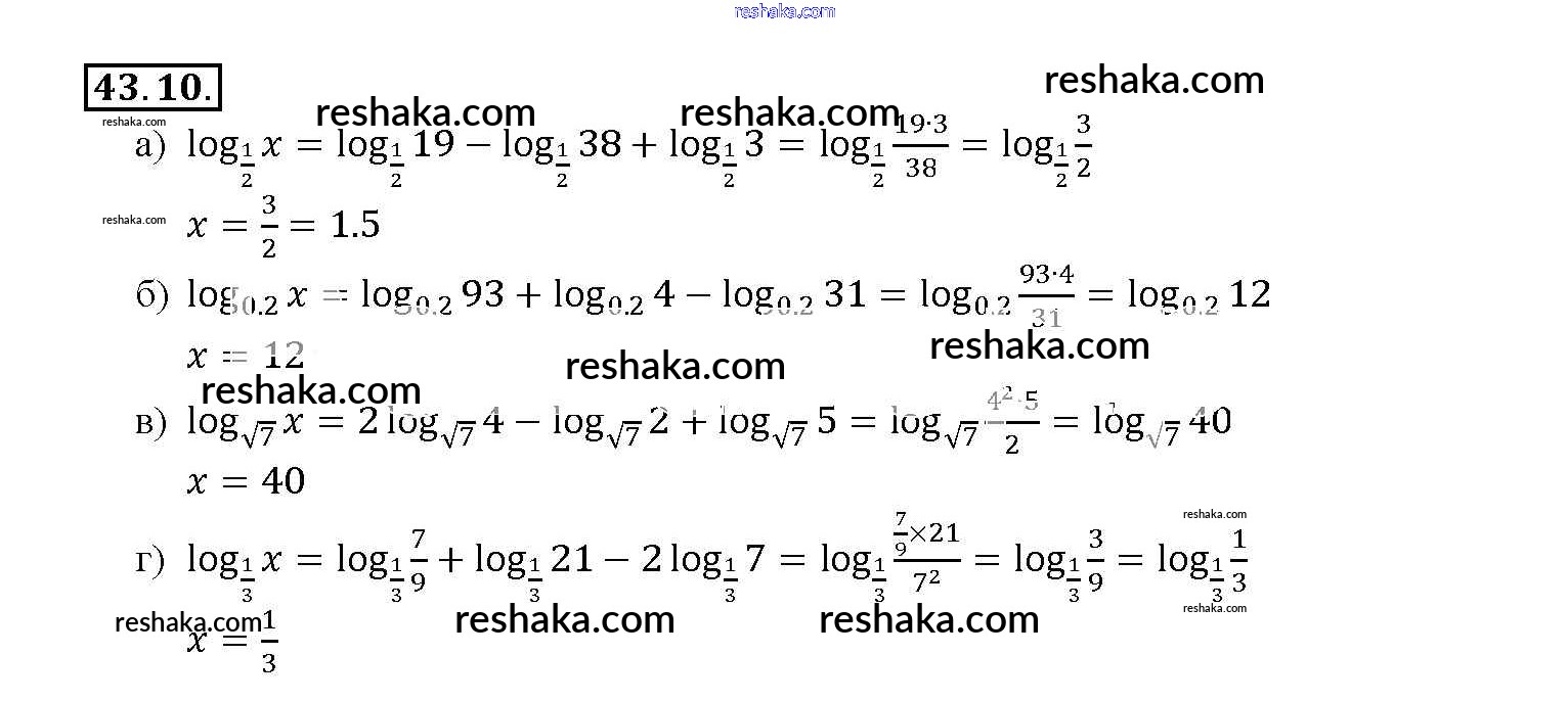 Представляем вам сборники по Алгебре, с готовыми ответами к Задачнику Мордкович школьной программы для учеников десятый-одиннадцатый класса. Это не просто гдз с ответом, а с подсказками, как верно решить §43. Свойства логарифмов Глава 7 43. 10. Проверяй домашку с умом и получай высший балл!