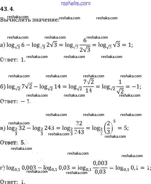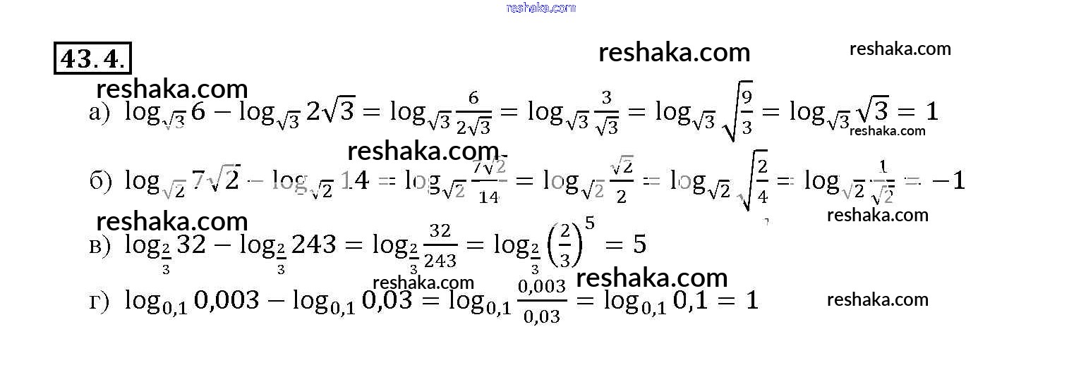 Представляем вам сборники по Алгебре, с готовыми ответами к Задачнику Мордкович школьной программы для учеников десятый-одиннадцатый класса. Это не просто гдз с ответом, а с подсказками, как верно решить §43. Свойства логарифмов Глава 7 43. 4. Проверяй домашку с умом и получай высший балл!