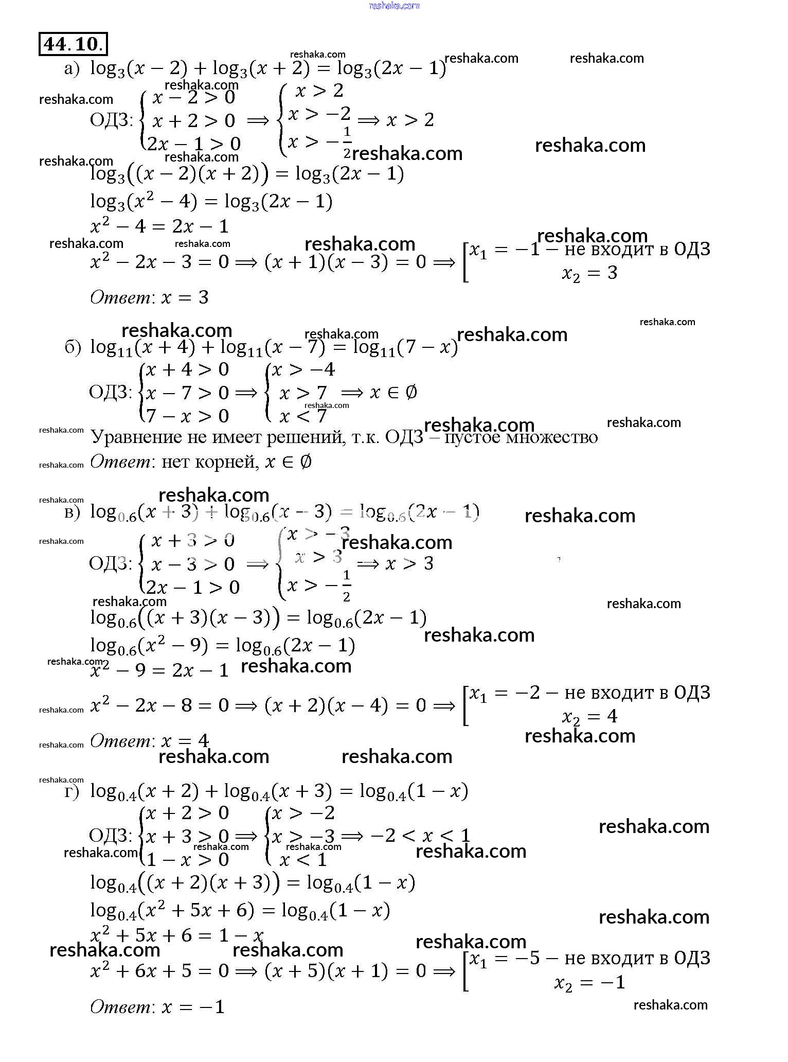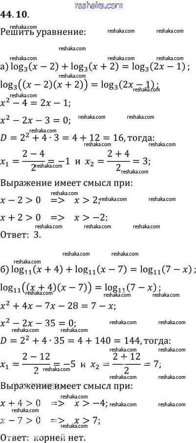 Представляем вам сборники по Алгебре, с готовыми ответами к Задачнику Мордкович школьной программы для учеников десятый-одиннадцатый класса. Это не просто гдз с ответом, а с подсказками, как верно решить §44. Логарифмические уравнения Глава 7 44. 10. Проверяй домашку с умом и получай высший балл!