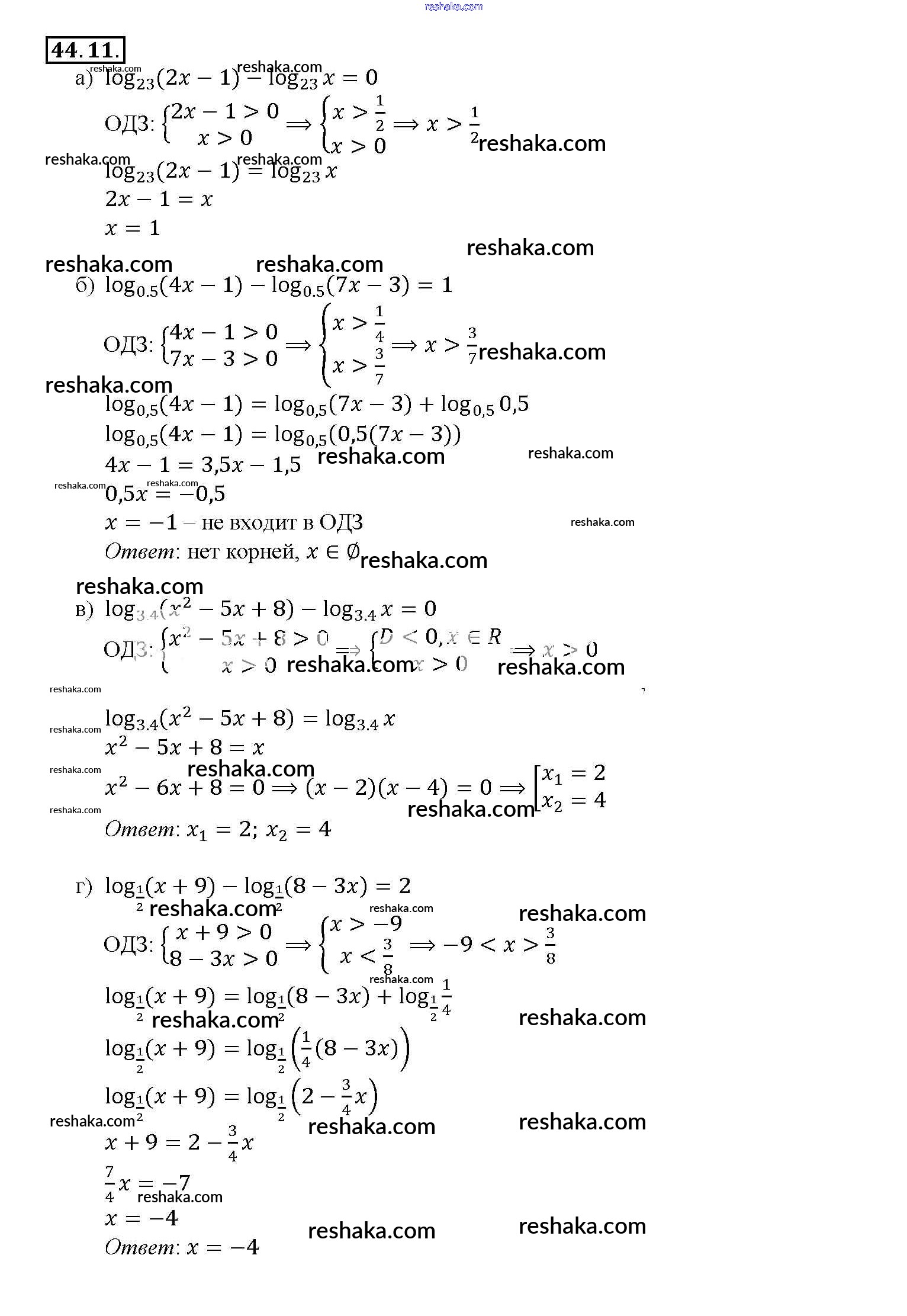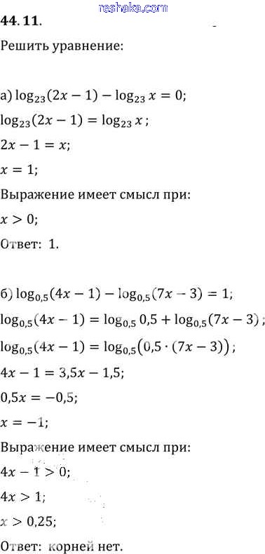 Представляем вам сборники по Алгебре, с готовыми ответами к Задачнику Мордкович школьной программы для учеников десятый-одиннадцатый класса. Это не просто гдз с ответом, а с подсказками, как верно решить §44. Логарифмические уравнения Глава 7 44. 11. Проверяй домашку с умом и получай высший балл!