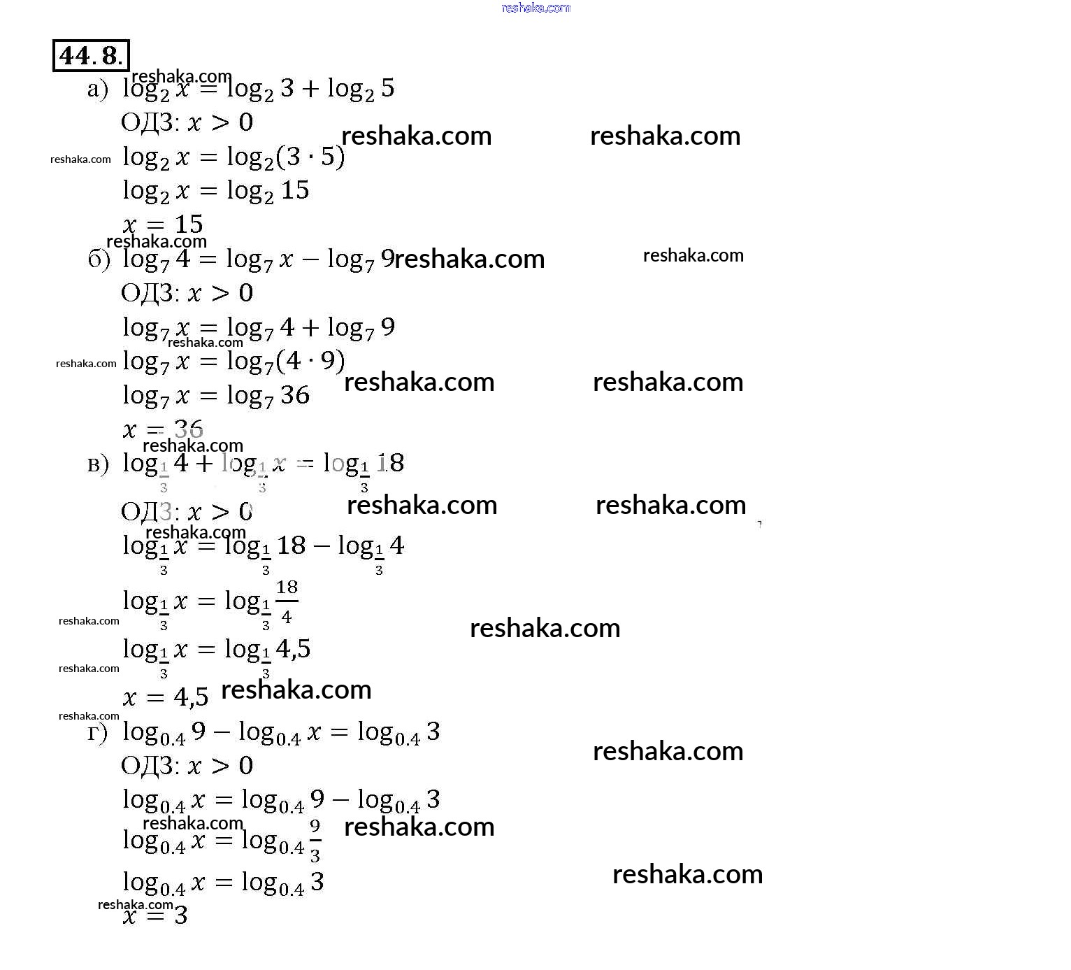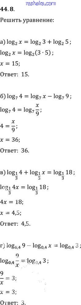 Представляем вам сборники по Алгебре, с готовыми ответами к Задачнику Мордкович школьной программы для учеников десятый-одиннадцатый класса. Это не просто гдз с ответом, а с подсказками, как верно решить §44. Логарифмические уравнения Глава 7 44. 8. Проверяй домашку с умом и получай высший балл!