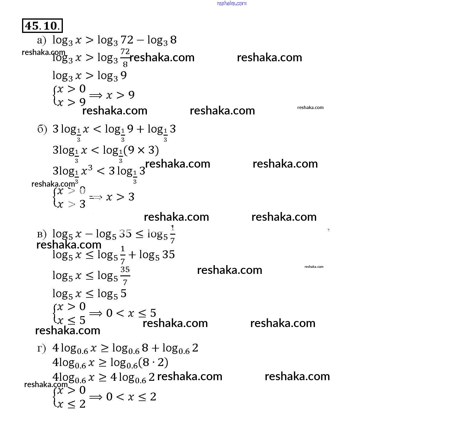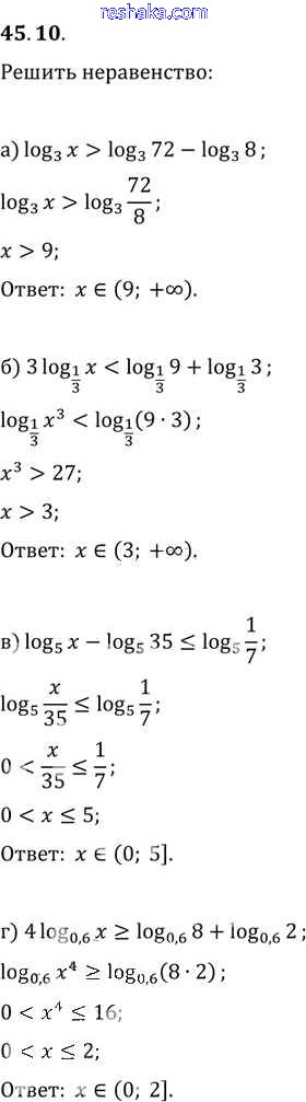Представляем вам сборники по Алгебре, с готовыми ответами к Задачнику Мордкович школьной программы для учеников десятый-одиннадцатый класса. Это не просто гдз с ответом, а с подсказками, как верно решить §45. Логарифмические неравенства Глава 7 45. 10. Проверяй домашку с умом и получай высший балл!