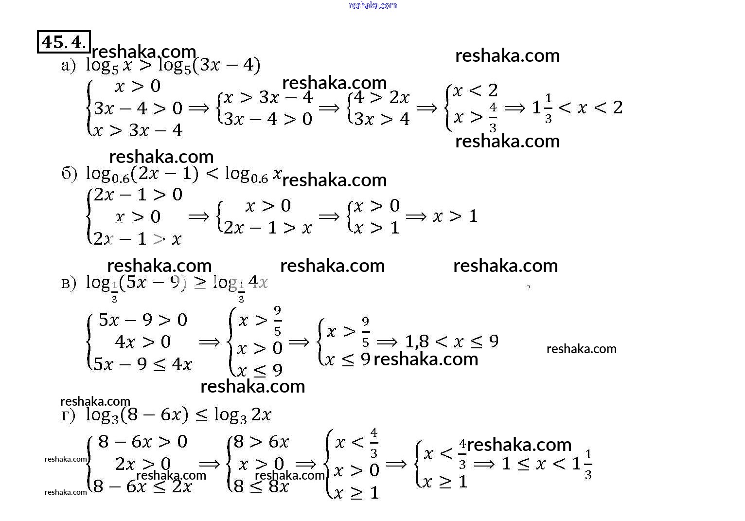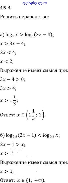 Представляем вам сборники по Алгебре, с готовыми ответами к Задачнику Мордкович школьной программы для учеников десятый-одиннадцатый класса. Это не просто гдз с ответом, а с подсказками, как верно решить §45. Логарифмические неравенства Глава 7 45. 4. Проверяй домашку с умом и получай высший балл!