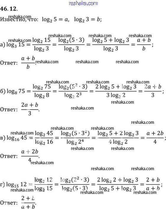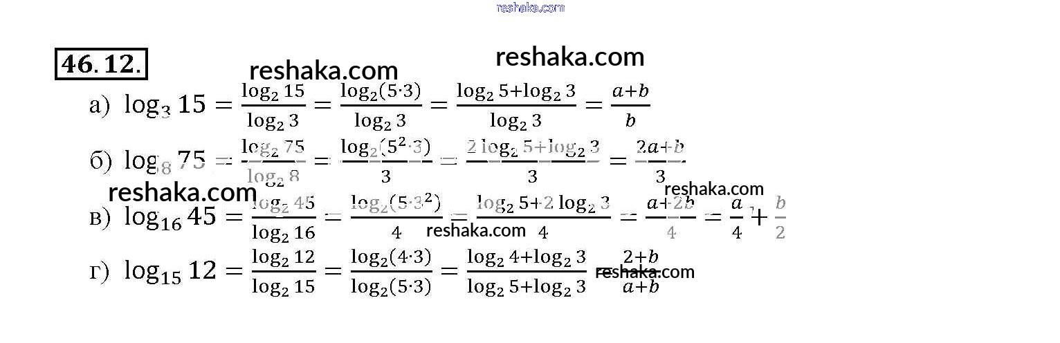 Представляем вам сборники по Алгебре, с готовыми ответами к Задачнику Мордкович школьной программы для учеников десятый-одиннадцатый класса. Это не просто гдз с ответом, а с подсказками, как верно решить §46. Переход к новому основанию логарифма Глава 7 46. 12. Проверяй домашку с умом и получай высший балл!