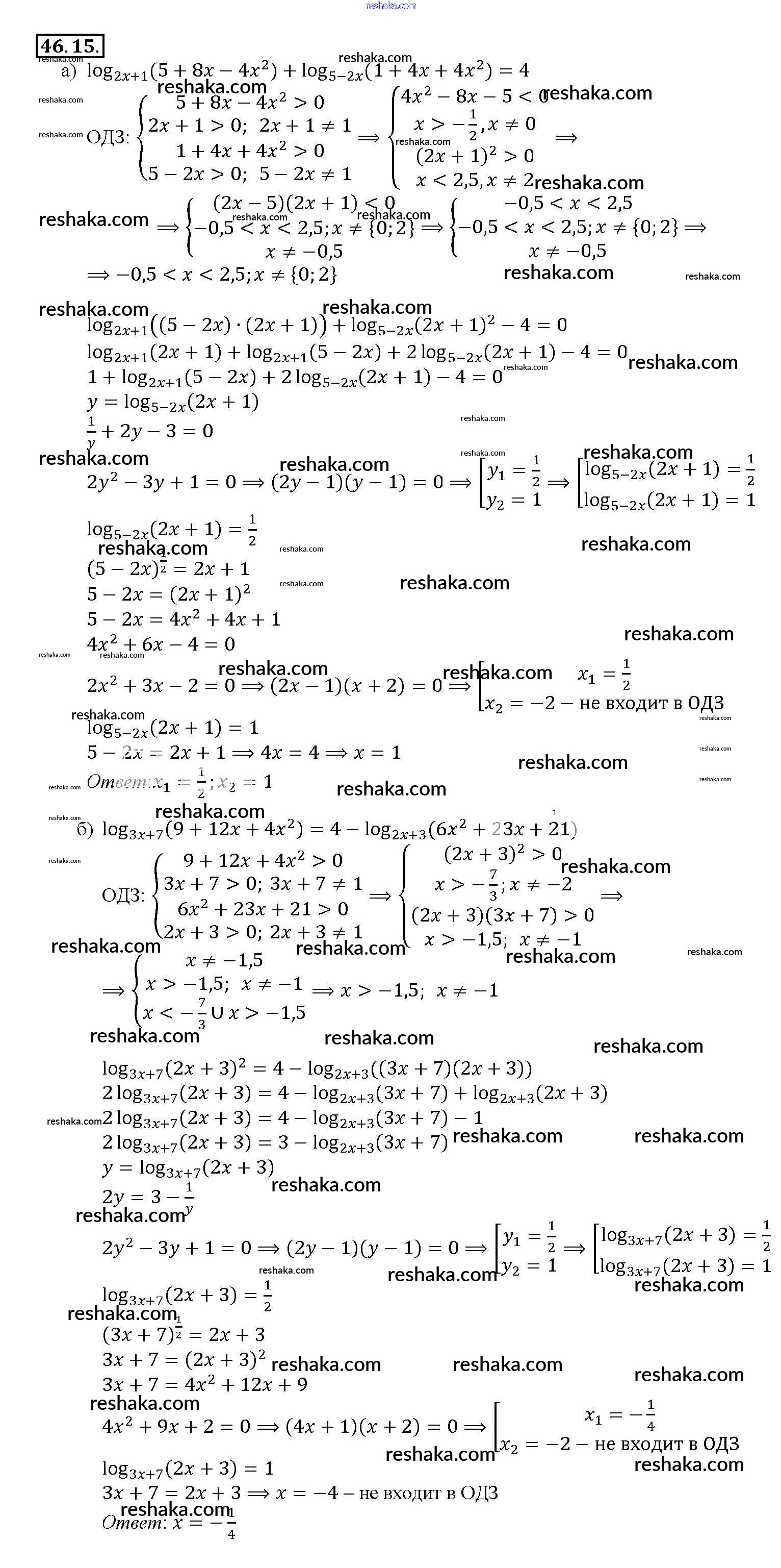 Решака - онлайн ответы Алгебра Мордкович, Денищева за 10-11 класс Задачник Базовый уровень ФГОС 2015 - 46. 15
