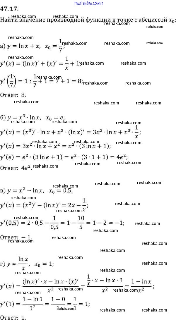 Представляем вам сборники по Алгебре, с готовыми ответами к Задачнику Мордкович школьной программы для учеников десятый-одиннадцатый класса. Это не просто гдз с ответом, а с подсказками, как верно решить §47. Дифференцирование показательной и логарифмической функций Глава 7 47. 17. Проверяй домашку с умом и получай высший балл!