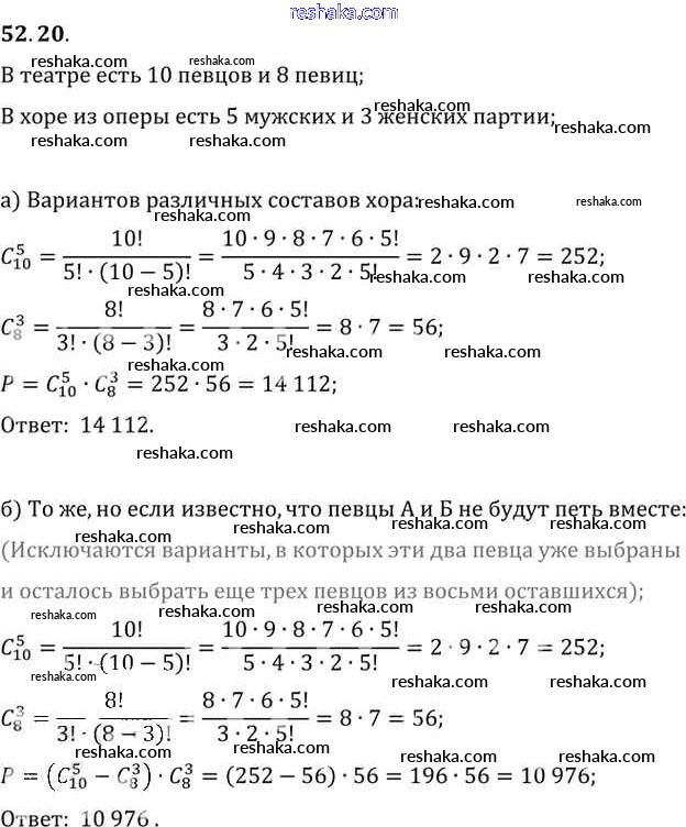 Представляем вам сборники по Алгебре, с готовыми ответами к Задачнику Мордкович школьной программы для учеников десятый-одиннадцатый класса. Это не просто гдз с ответом, а с подсказками, как верно решить §52. Сочетания и размещения Глава 9 52. 20. Проверяй домашку с умом и получай высший балл!