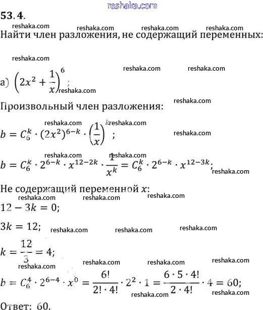Представляем вам сборники по Алгебре, с готовыми ответами к Задачнику Мордкович школьной программы для учеников десятый-одиннадцатый класса. Это не просто гдз с ответом, а с подсказками, как верно решить §53. Формула бинома Ньютона Глава 9 53. 4. Проверяй домашку с умом и получай высший балл!