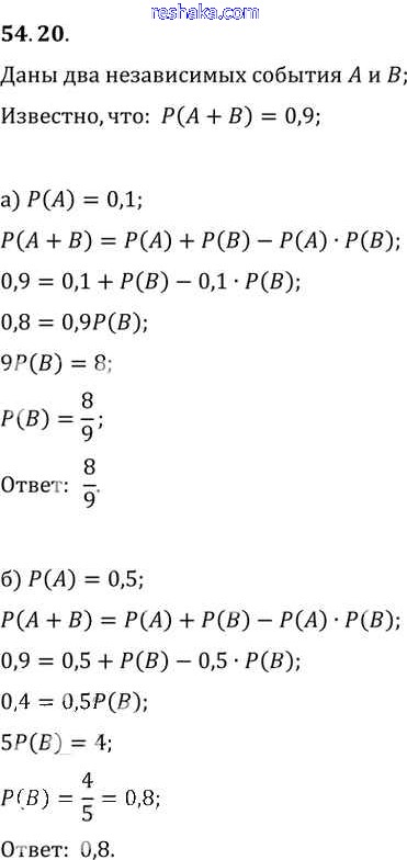 Представляем вам сборники по Алгебре, с готовыми ответами к Задачнику Мордкович школьной программы для учеников десятый-одиннадцатый класса. Это не просто гдз с ответом, а с подсказками, как верно решить §54. Случайные события и их вероятности Глава 9 54. 20. Проверяй домашку с умом и получай высший балл!