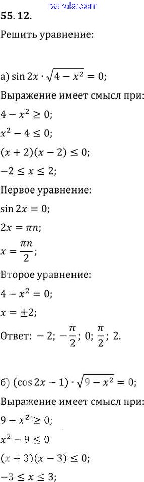 Представляем вам сборники по Алгебре, с готовыми ответами к Задачнику Мордкович школьной программы для учеников десятый-одиннадцатый класса. Это не просто гдз с ответом, а с подсказками, как верно решить §55. Равносильность уравнений Глава 10 55. 12. Проверяй домашку с умом и получай высший балл!