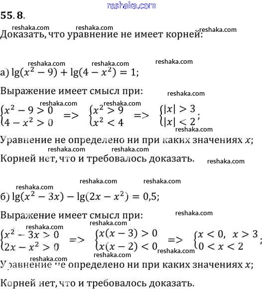 Представляем вам сборники по Алгебре, с готовыми ответами к Задачнику Мордкович школьной программы для учеников десятый-одиннадцатый класса. Это не просто гдз с ответом, а с подсказками, как верно решить §55. Равносильность уравнений Глава 10 55. 8. Проверяй домашку с умом и получай высший балл!