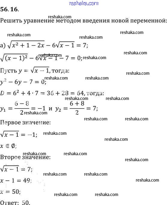 Представляем вам сборники по Алгебре, с готовыми ответами к Задачнику Мордкович школьной программы для учеников десятый-одиннадцатый класса. Это не просто гдз с ответом, а с подсказками, как верно решить §56. Общие методы решения уравнений Глава 10 56. 16. Проверяй домашку с умом и получай высший балл!
