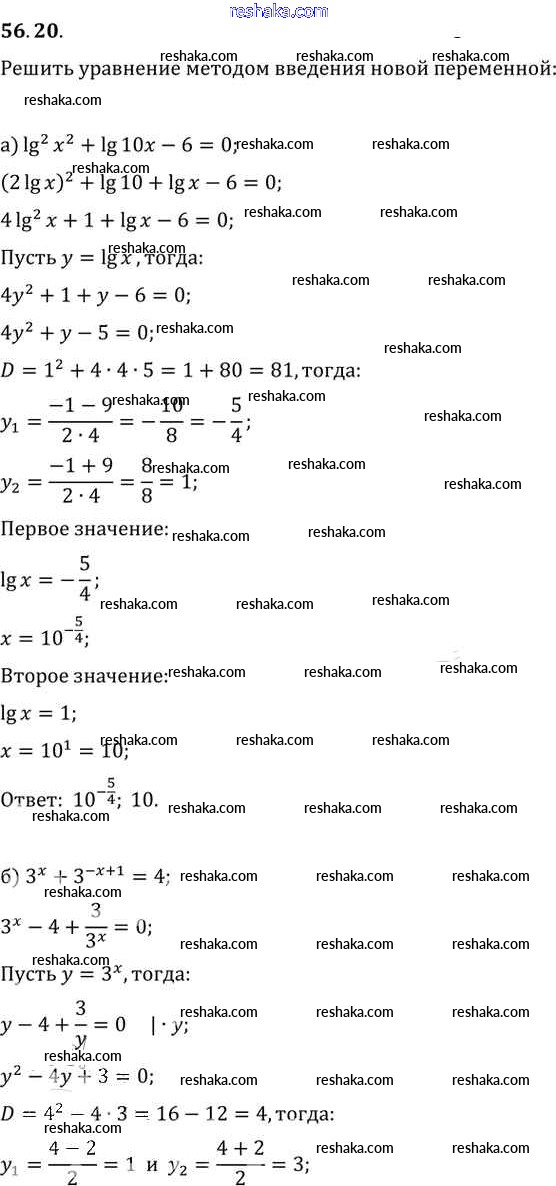 Представляем вам сборники по Алгебре, с готовыми ответами к Задачнику Мордкович школьной программы для учеников десятый-одиннадцатый класса. Это не просто гдз с ответом, а с подсказками, как верно решить §56. Общие методы решения уравнений Глава 10 56. 20. Проверяй домашку с умом и получай высший балл!