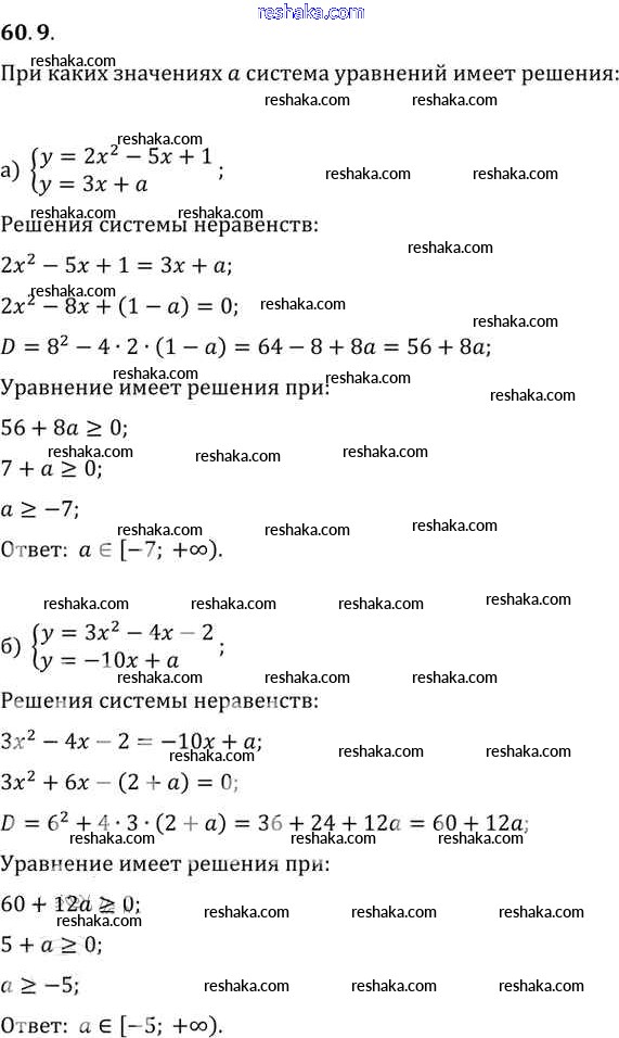 Представляем вам сборники по Алгебре, с готовыми ответами к Задачнику Мордкович школьной программы для учеников десятый-одиннадцатый класса. Это не просто гдз с ответом, а с подсказками, как верно решить §60. Задачи с параметрами Глава 10 60. 9. Проверяй домашку с умом и получай высший балл!