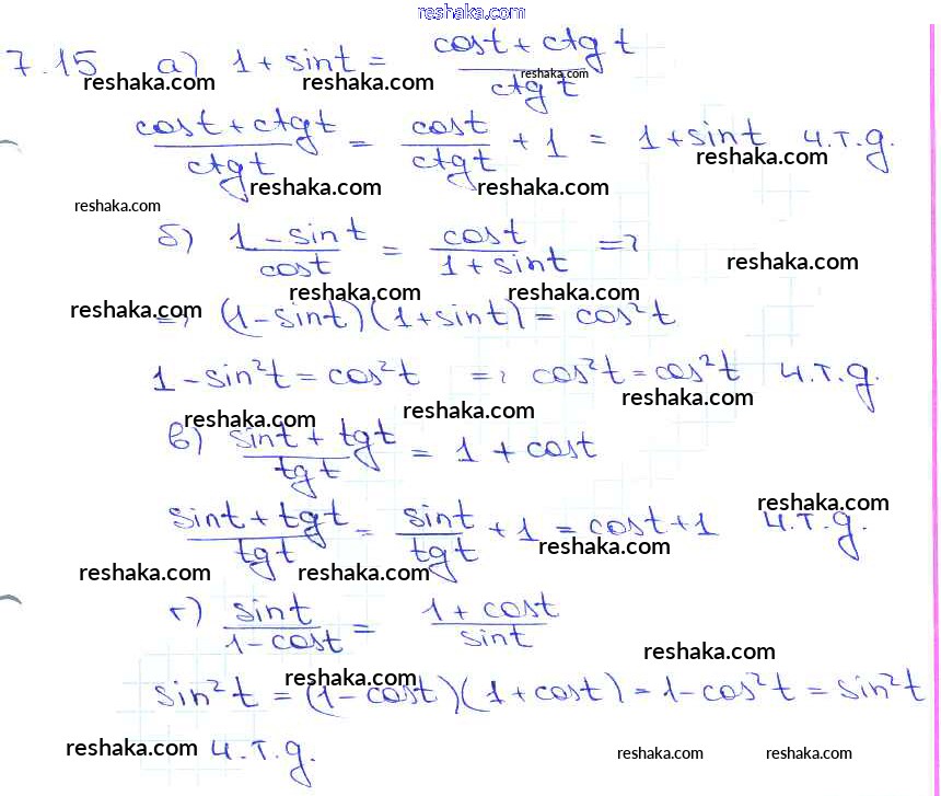 Представляем вам сборники по Алгебре, с готовыми ответами к Задачнику Мордкович школьной программы для учеников десятый-одиннадцатый класса. Это не просто гдз с ответом, а с подсказками, как верно решить §7. Тригонометрические функции числового аргумента Глава 2 7. 15. Проверяй домашку с умом и получай высший балл!