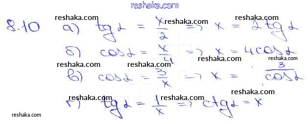 Представляем вам сборники по Алгебре, с готовыми ответами к Задачнику Мордкович школьной программы для учеников десятый-одиннадцатый класса. Это не просто гдз с ответом, а с подсказками, как верно решить §8. Тригонометрические функции углового аргумента Глава 2 8. 10. Проверяй домашку с умом и получай высший балл!