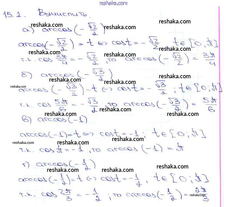 Представляем вам сборники по Алгебре, с готовыми ответами к Задачнику Мордкович школьной программы для учеников десятый-одиннадцатый класса. Это не просто гдз с ответом, а с подсказками, как верно решить §15. Арккосинус. Решение уравнения cos t = a Глава 3 15. 2. Проверяй домашку с умом и получай высший балл!