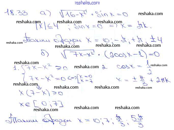 Представляем вам сборники по Алгебре, с готовыми ответами к Задачнику Мордкович школьной программы для учеников десятый-одиннадцатый класса. Это не просто гдз с ответом, а с подсказками, как верно решить §18. Тригонометрические уравнения Глава 3 18. 33. Проверяй домашку с умом и получай высший балл!
