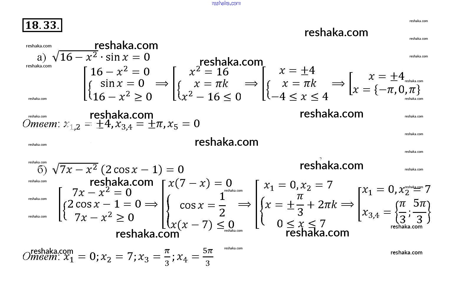 Решака - онлайн ответы Алгебра Мордкович, Денищева за 10-11 класс Задачник Базовый уровень ФГОС 2015 - 18. 33