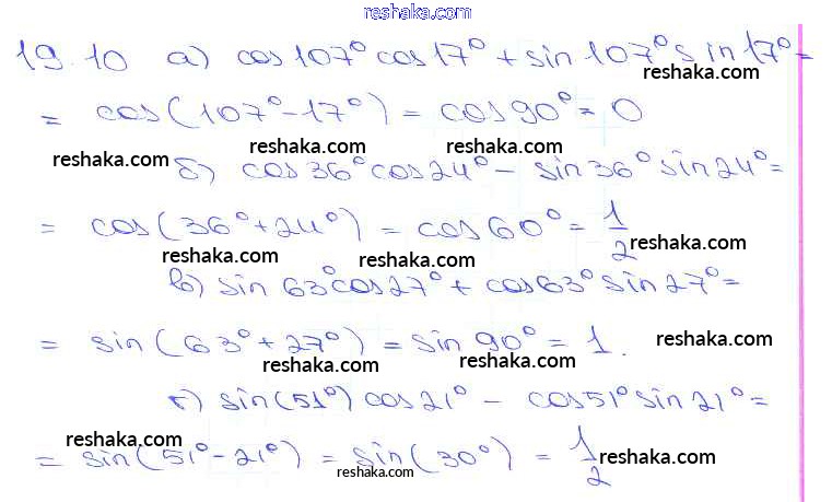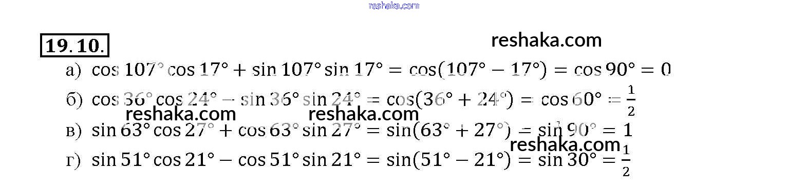 Представляем вам сборники по Алгебре, с готовыми ответами к Задачнику Мордкович школьной программы для учеников десятый-одиннадцатый класса. Это не просто гдз с ответом, а с подсказками, как верно решить §19. Синус и косинус суммы и разности аргументов Глава 4 19. 10. Проверяй домашку с умом и получай высший балл!