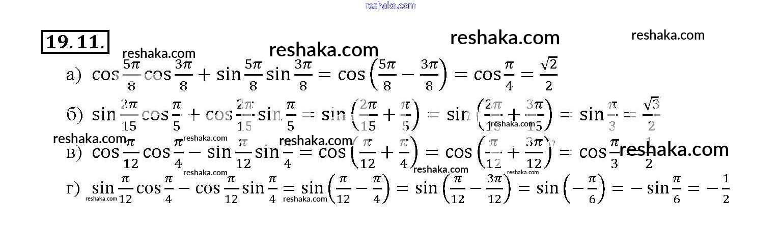 Представляем вам сборники по Алгебре, с готовыми ответами к Задачнику Мордкович школьной программы для учеников десятый-одиннадцатый класса. Это не просто гдз с ответом, а с подсказками, как верно решить §19. Синус и косинус суммы и разности аргументов Глава 4 19. 11. Проверяй домашку с умом и получай высший балл!